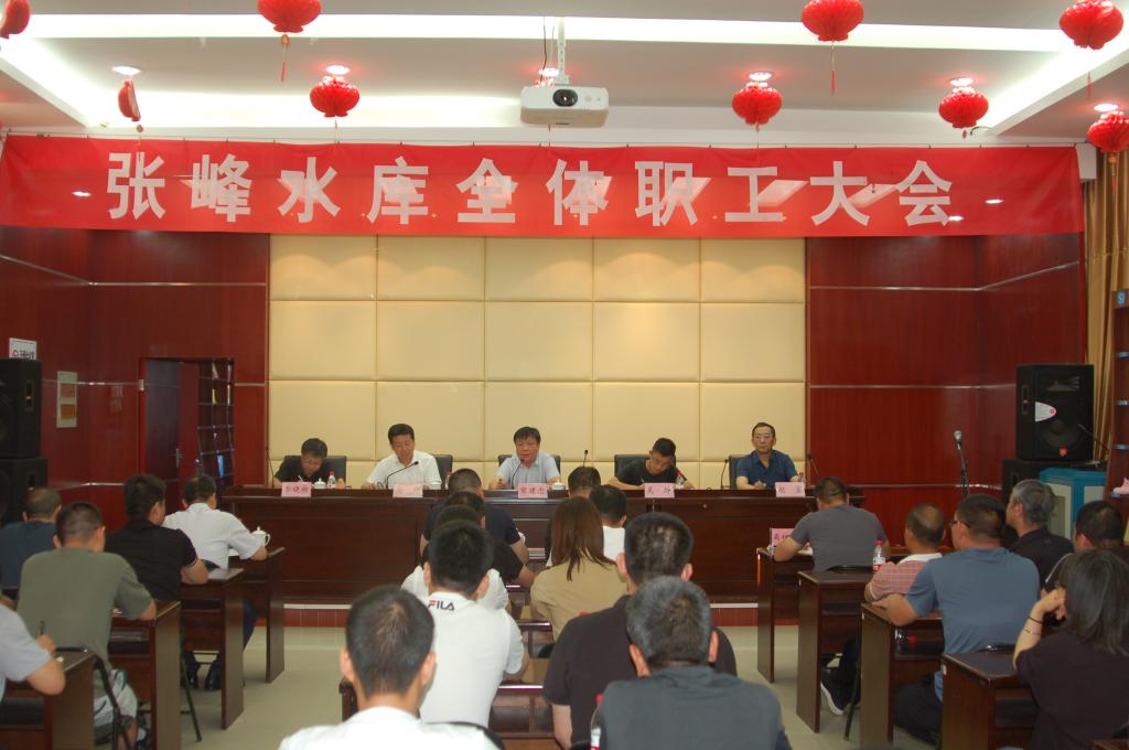 6月24日,萬(wàn)家寨水控集團(tuán)黨委委員、副總經(jīng)理常建忠出席張峰水庫(kù)干部大會(huì),并檢查水庫(kù)安全度汛工作。集團(tuán)公司黨委組織部有關(guān)人員宣布張峰水庫(kù)干部任命決定,新任干部作表態(tài)發(fā)言。