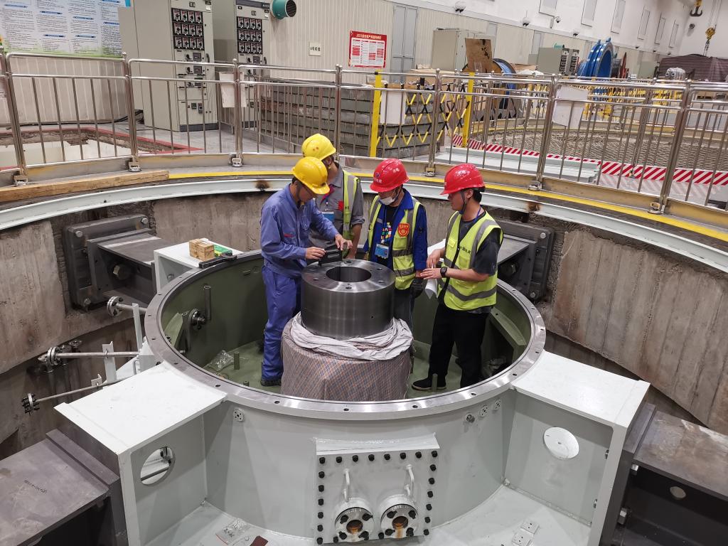 ▲電動(dòng)機(jī)推力頭預(yù)裝調(diào)整