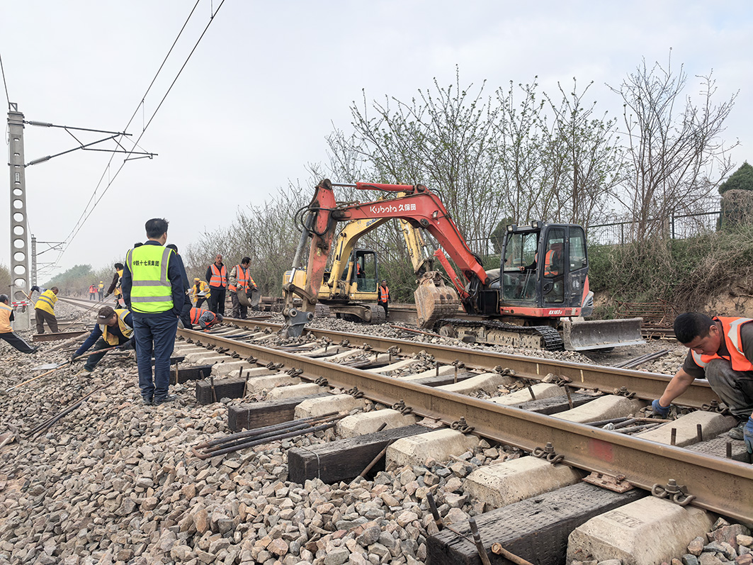 ▲對(duì)G8頂管上方的南同蒲鐵路路基進(jìn)行加固和防護(hù)作業(yè)