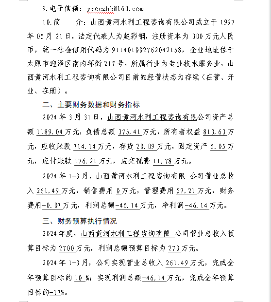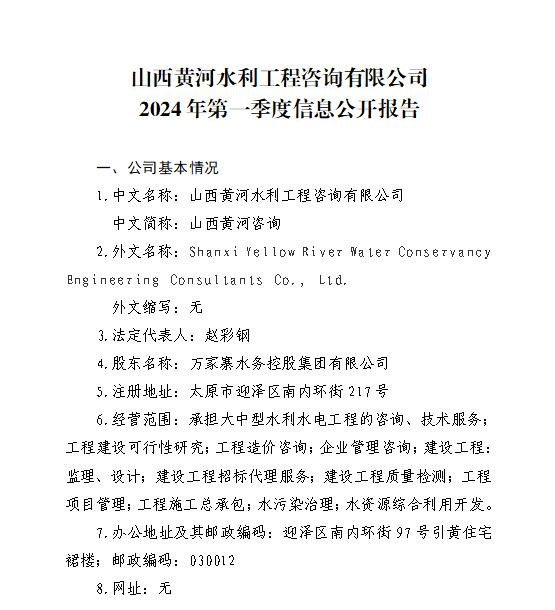 山西水利建設開發(fā)咨詢有限公司2024年第一季度信息...