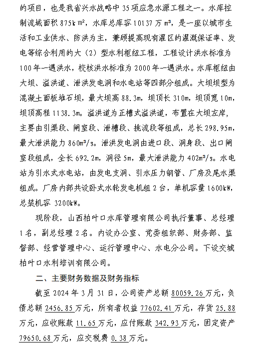 山西汾河水庫管理有限公司2024年第一季度信息公開...