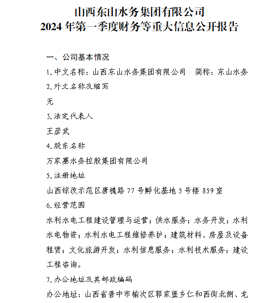 山西汾河流域管理有限公司2024年第一季度財務(wù)等重...