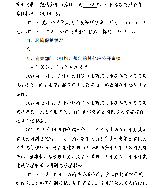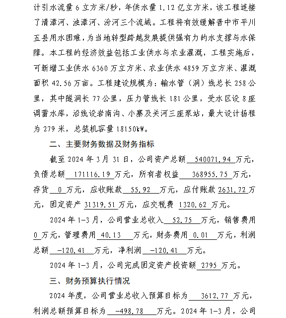 山西中部引黃水務(wù)集團有限公司2024年第一季度信息...