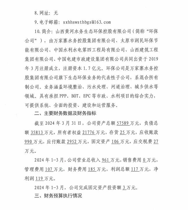 山西省水利建筑工程局集團(tuán)有限公司2024年一季度信...