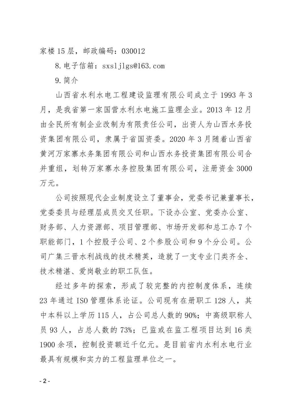 山西省水利水電工程建設(shè)監(jiān)理有限公司
