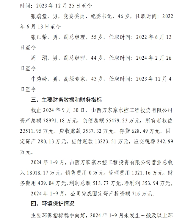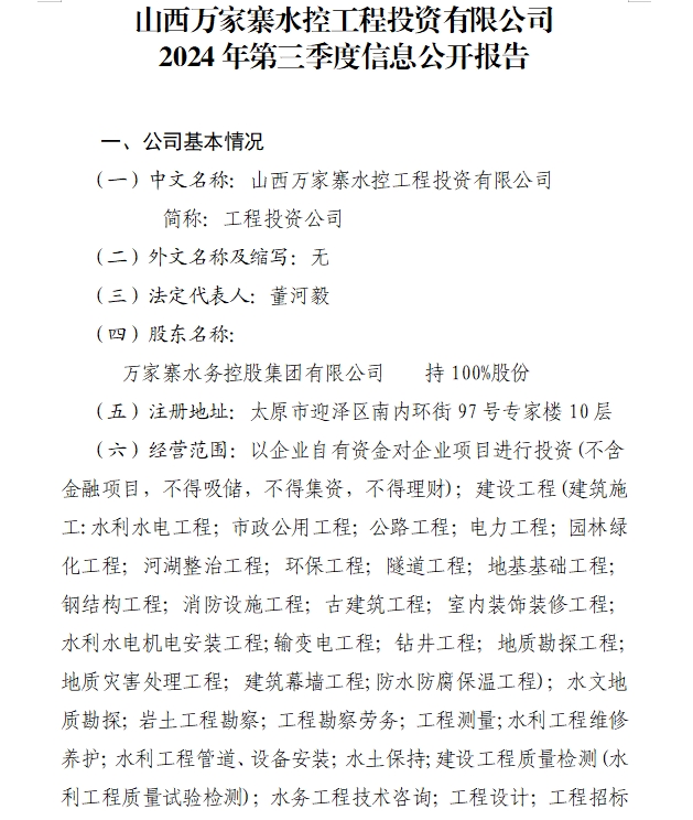 山西萬家寨引黃水務(wù)集團有限公司2024年第三季度信...