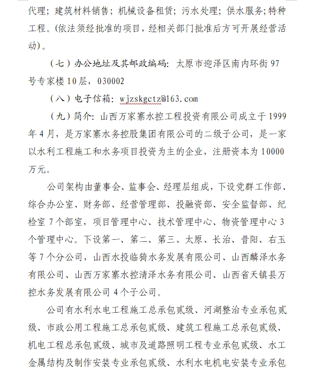 山西萬家寨水控工程投資有限公司