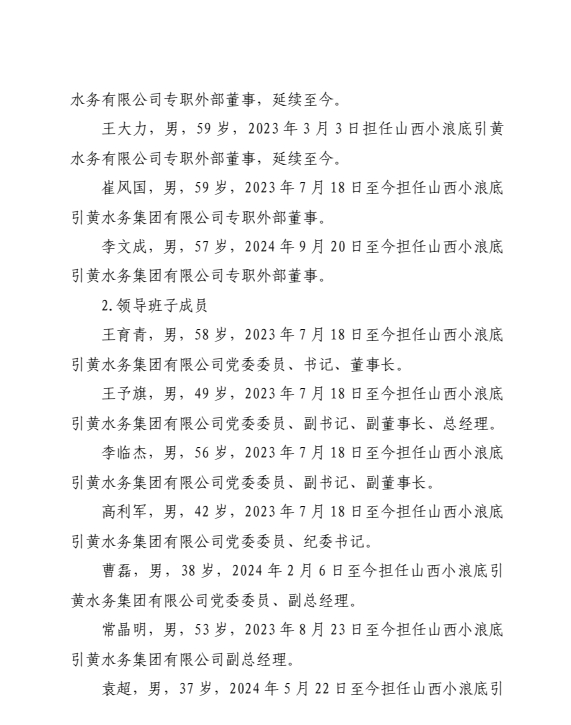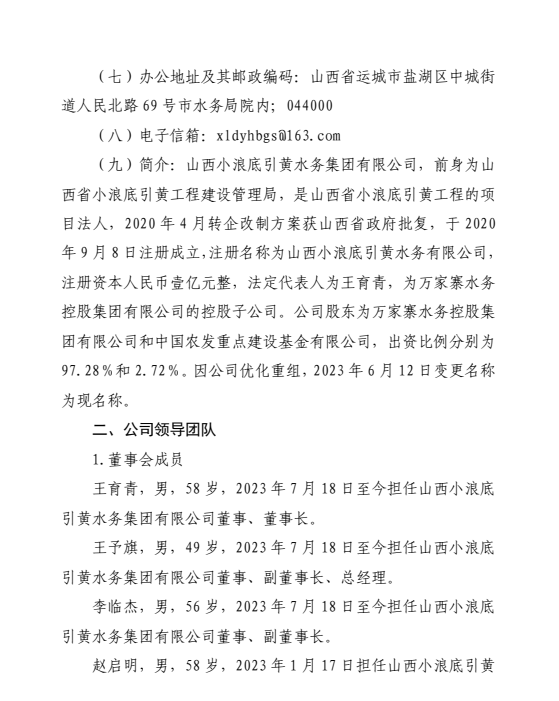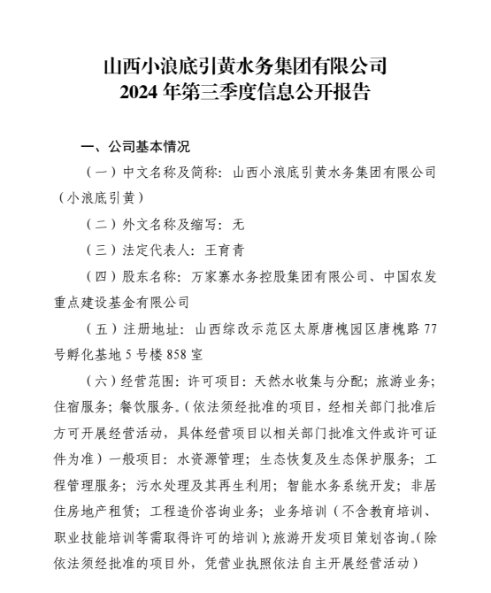 山西小浪底引黃水務(wù)集團(tuán)有限公司2024年中期信息公...
