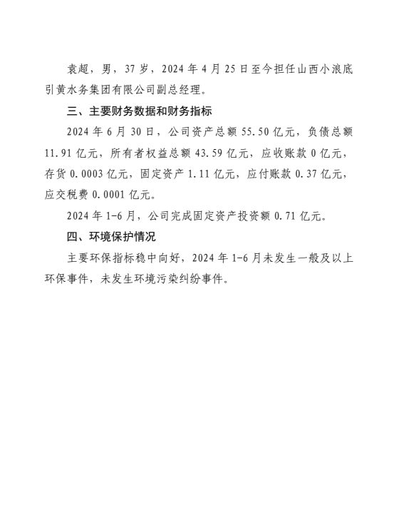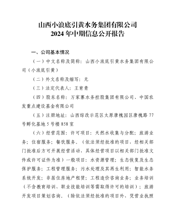 山西小浪底引黃水務(wù)集團(tuán)有限公司2024年第三季度信...