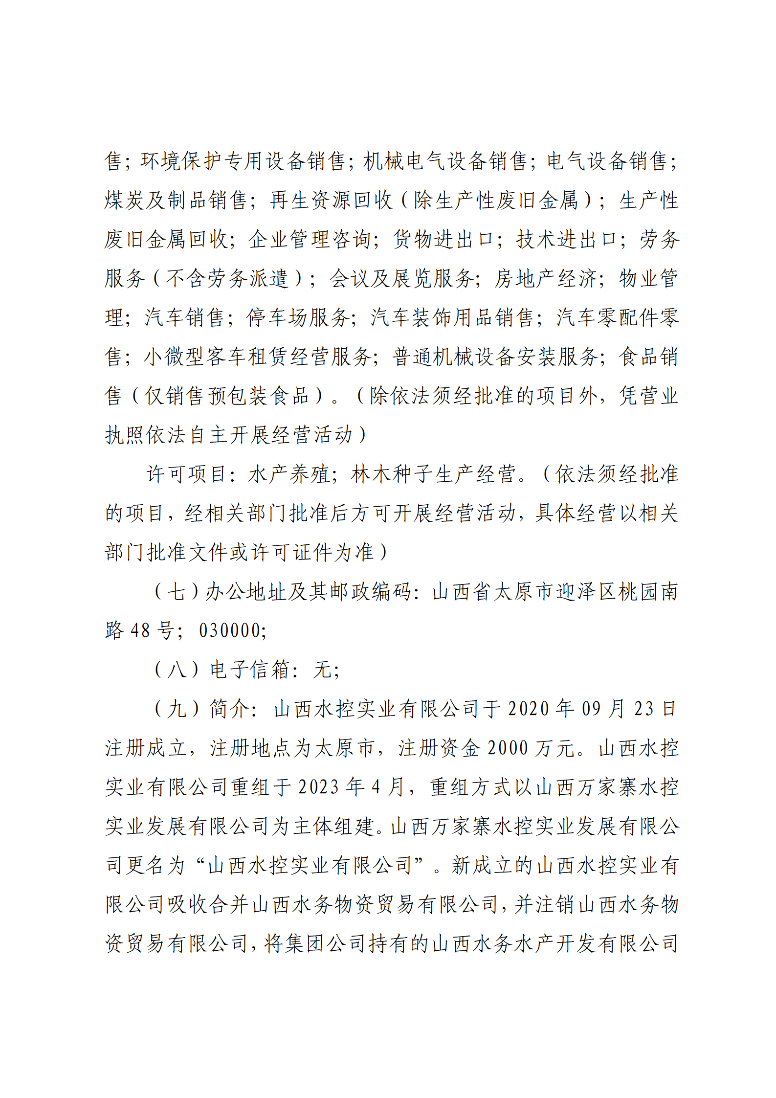 山西漳河水務集團有限公司2024年第三季度信息公開...