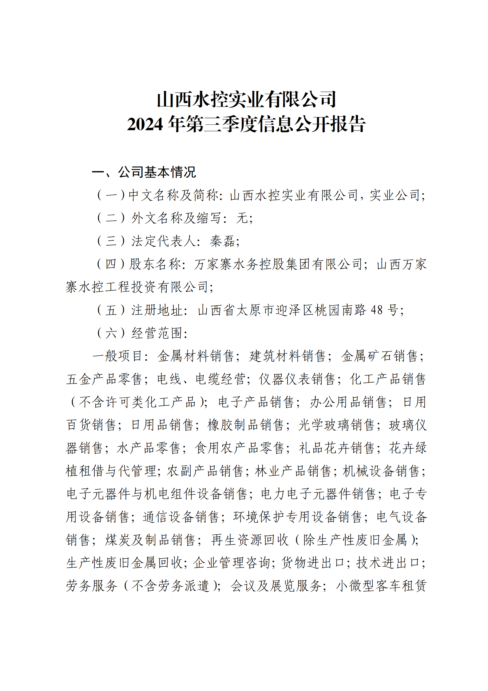 山西水務(wù)工程建設(shè)監(jiān)理有限公司2024年第三季度財(cái)務(wù)...