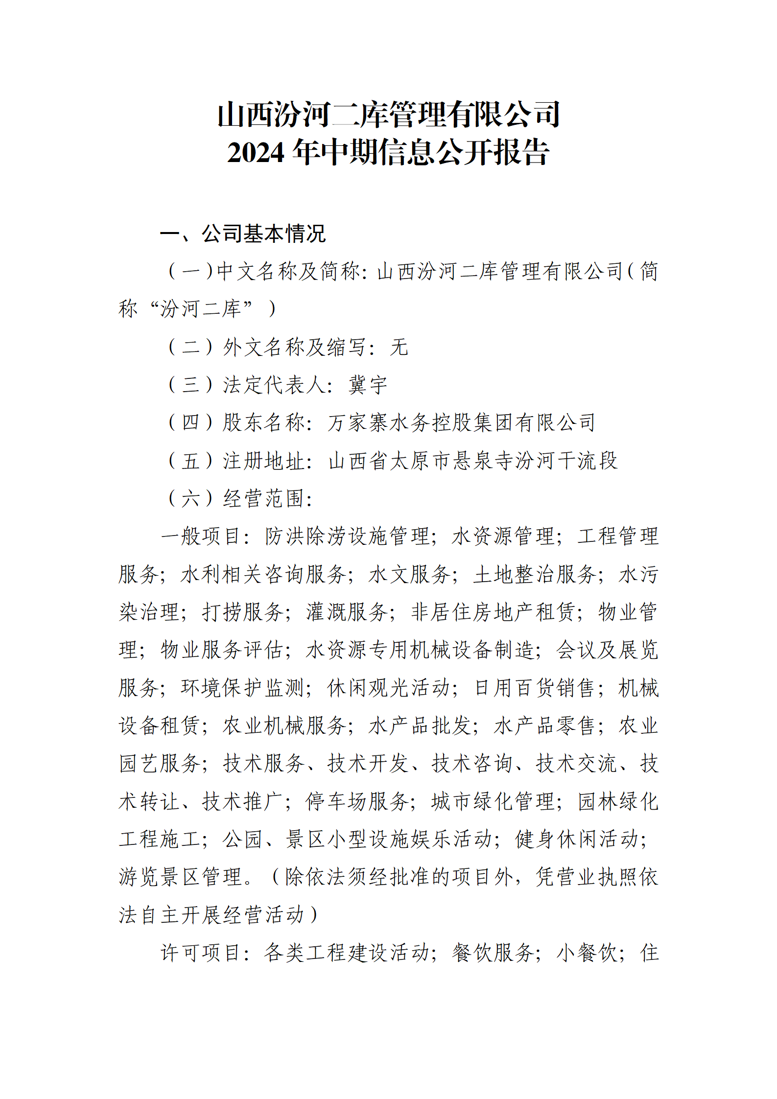 山西汾河二庫(kù)管理有限公司2024年第三季度信息公開...
