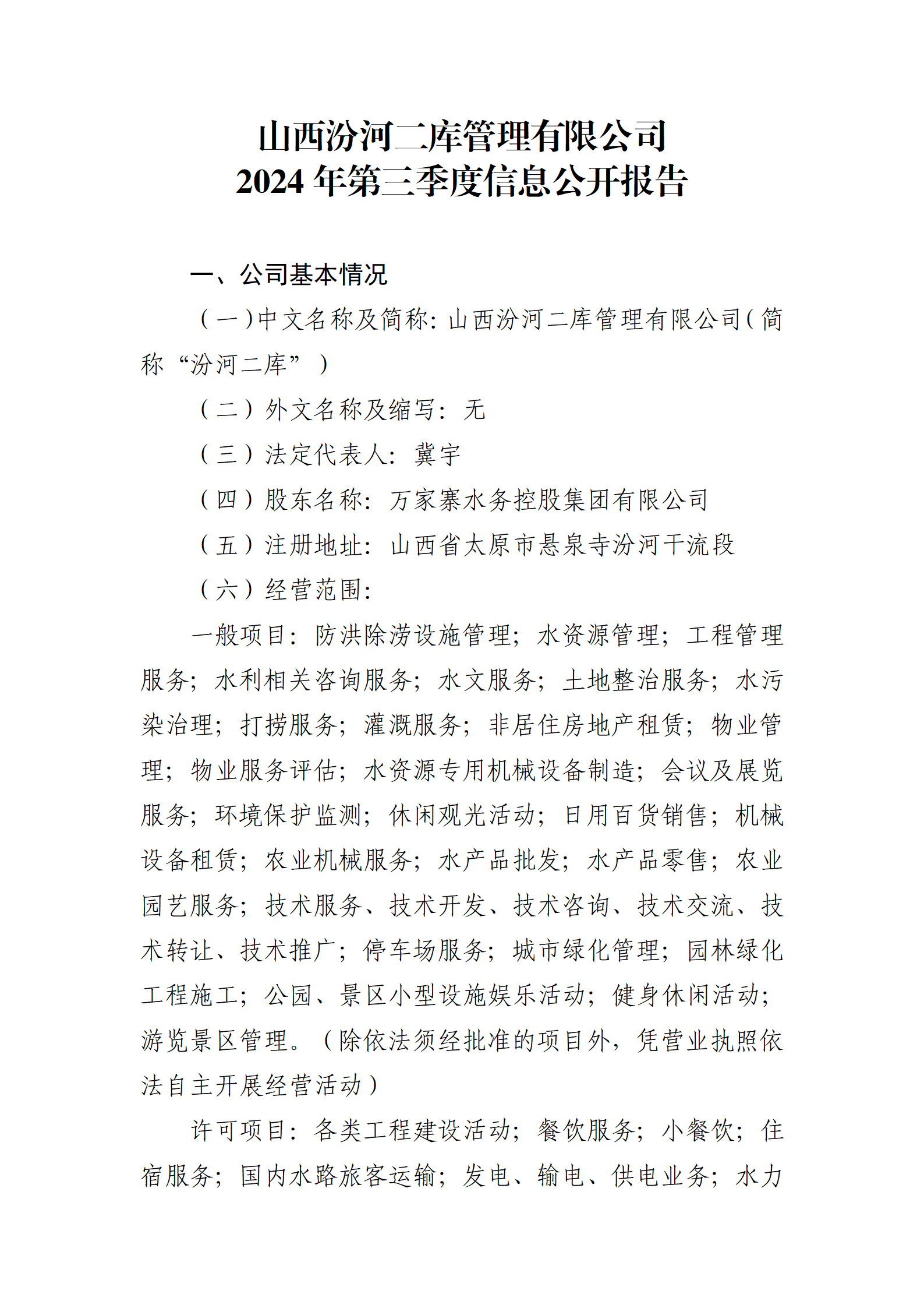 山西汾河二庫(kù)管理有限公司2024年中期信息公開報(bào)告