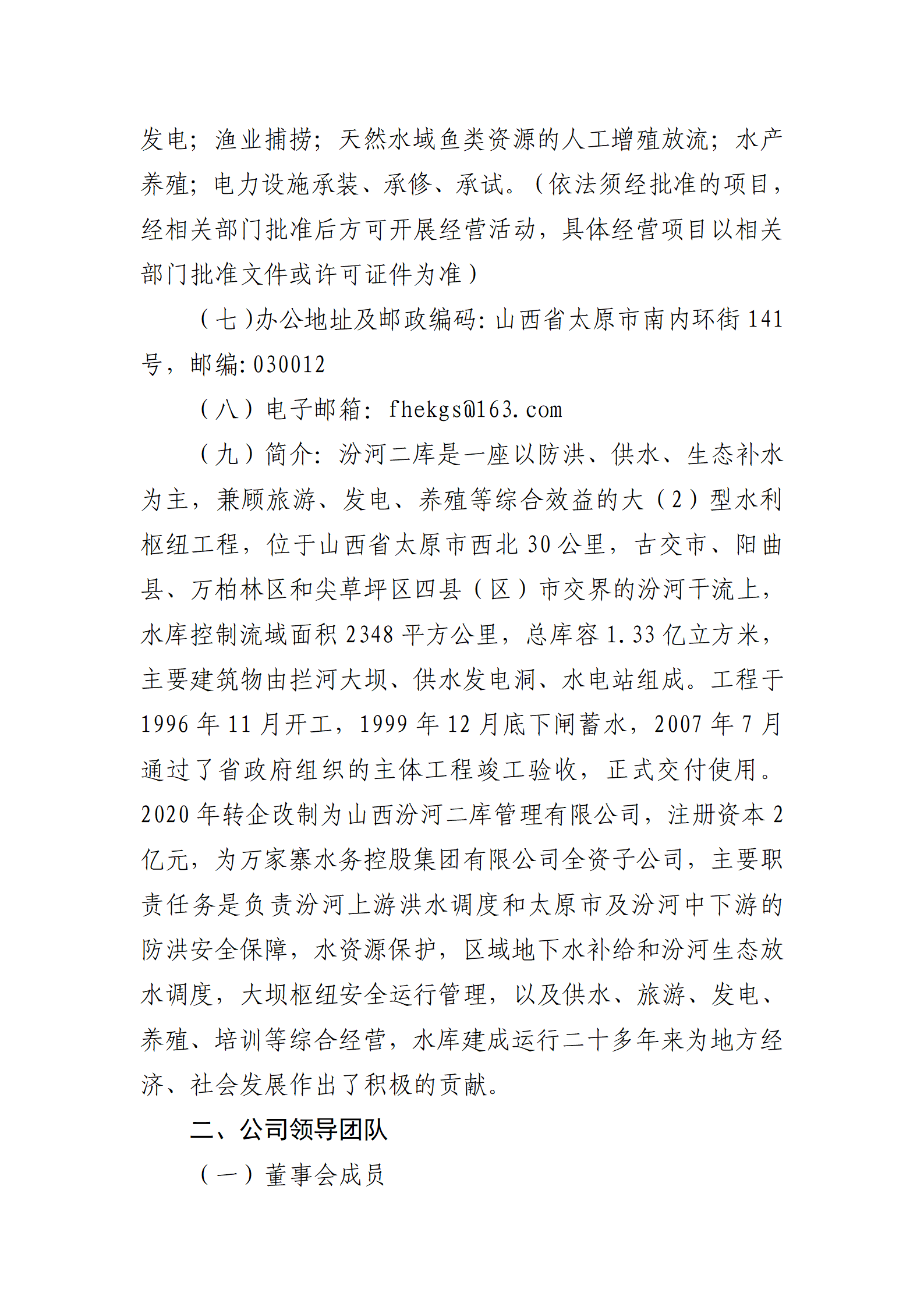 山西汾河二庫(kù)管理有限公司