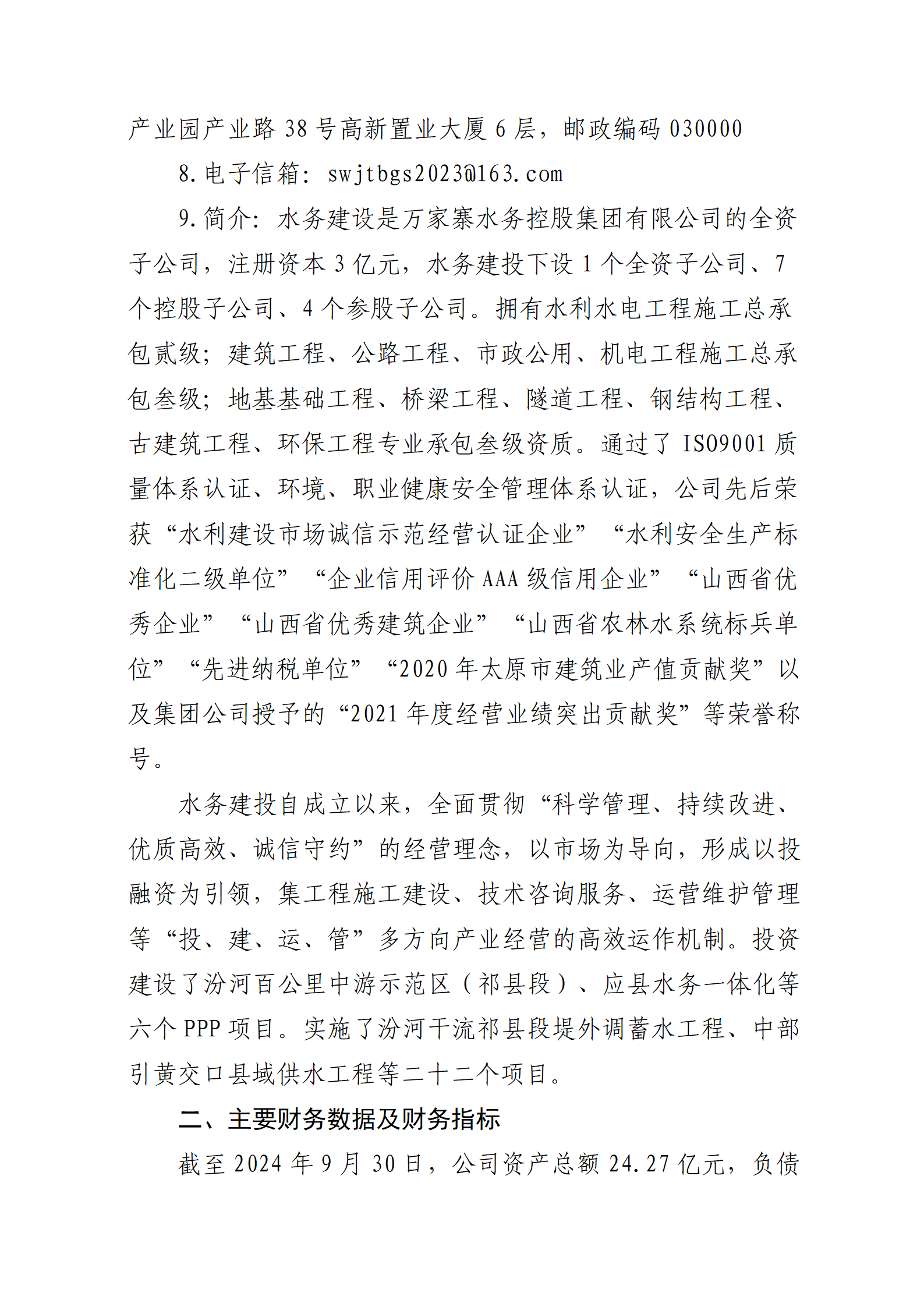 山西汾河二庫管理有限公司2024年第三季度信息公開...