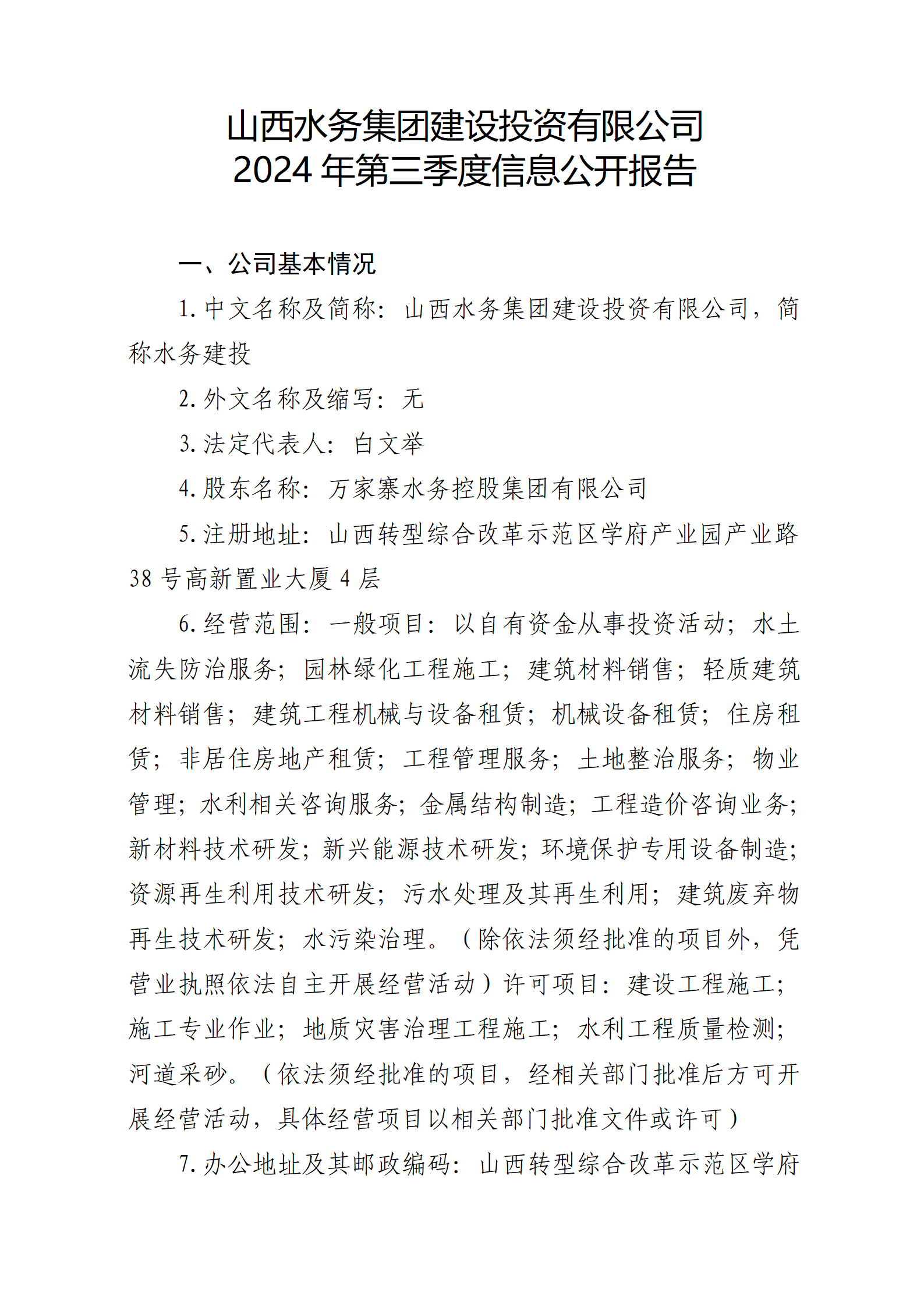 山西太忻滹沱河供水有限公司2024年第三季度重大信...