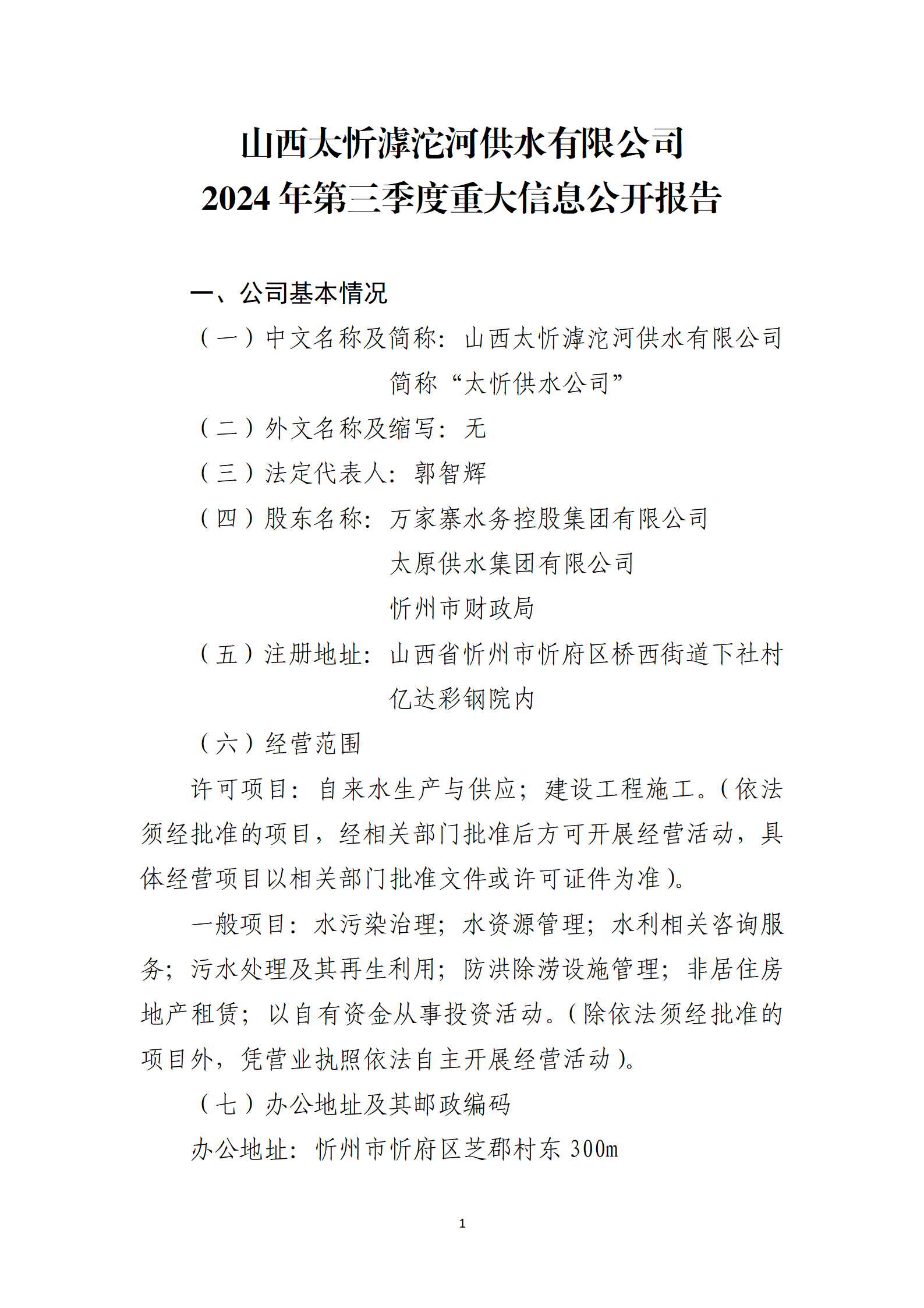 山西水務(wù)集團建設(shè)投資有限公司2024年第三季度信息...