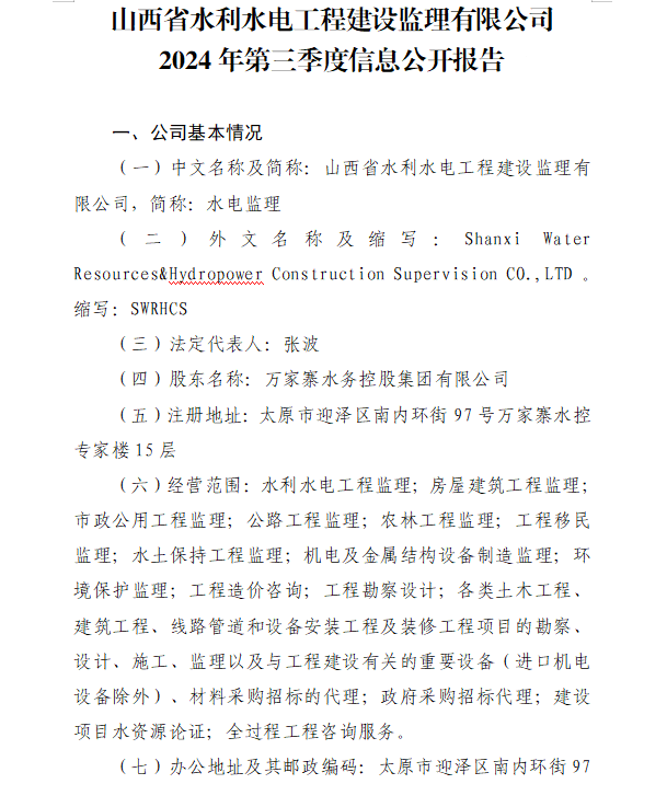 山西水利建設(shè)開(kāi)發(fā)咨詢有限公司2024年第三季度信息...