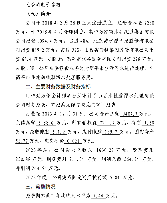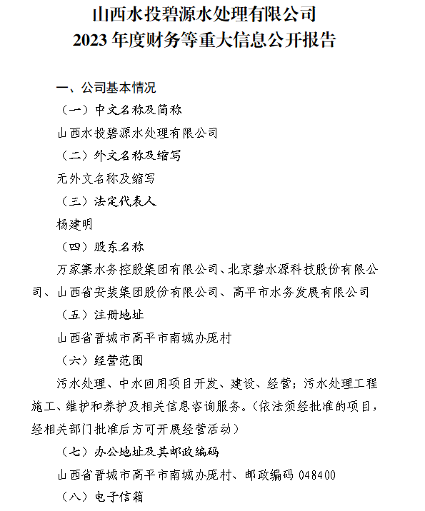山西水投碧源水處理有限公司2024年中期信息公開報(bào)...