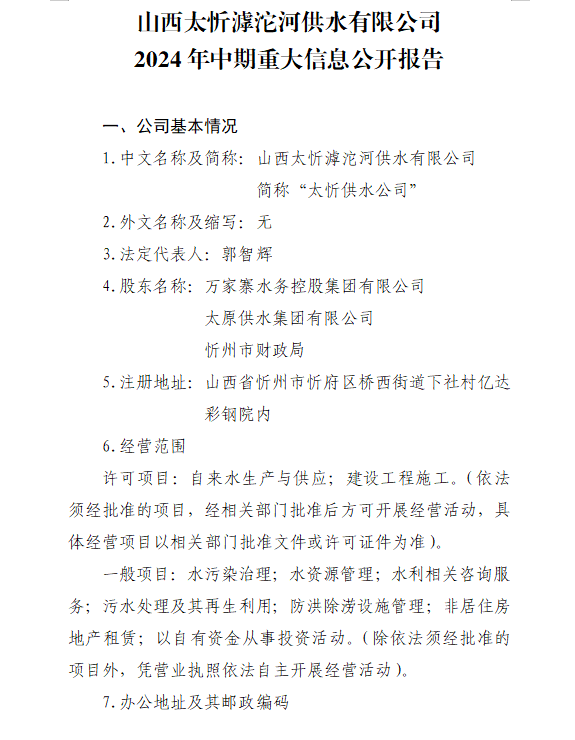 山西沁河水務(wù)集團有限公司2024年第三季度信息公開...