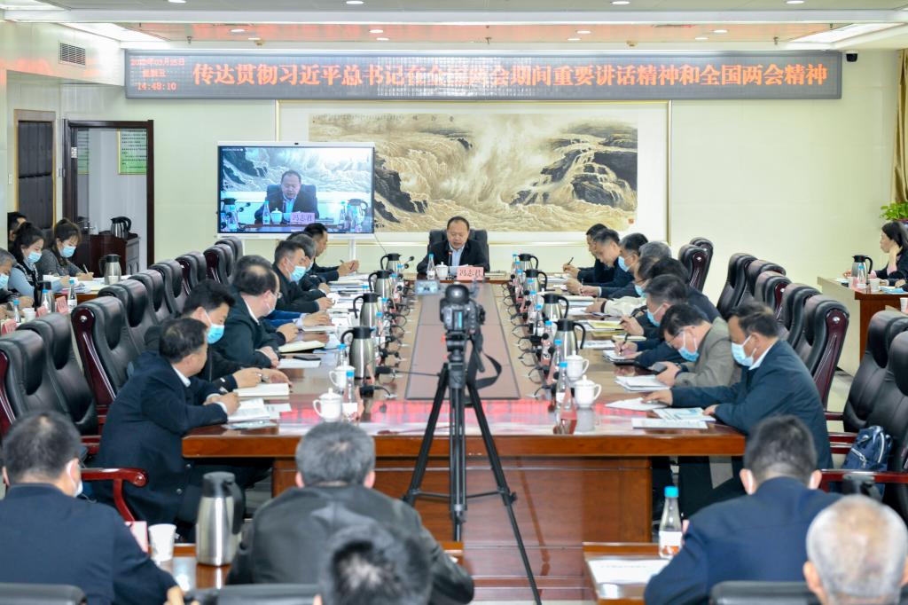 馮志君指出,習近平總書記在兩會期間發(fā)表的一系列重要講話,為我們奮進新征程、奪取新勝利,做好相關工作指明了方向,提供了遵循。習近平總書記強調(diào),“各級黨委和領導干部要自覺講政治,對“國之大者”一定要心中有數(shù),要時刻關注黨中央在關心什么、強調(diào)什么,深刻領會什么是黨和國家最重要的利益、什么是最需要堅定維護的立場”。在全國兩會期間,習近平總書記還提出了兩個重要論斷,即5個“必由之路”和5個“戰(zhàn)略性的有利條件”,各級黨組織要深刻領會,把學習好、貫徹好、落實好習近平總書記重要講話精神和全國兩會精神作為重要政治任務,與學習貫徹習近平總書記考察調(diào)研山西重要指示精神結合起來,與持續(xù)鞏固黨史學習教育成果結合起來,領會精神實質(zhì)、把握核心要義、堅定前進方向,在深學細悟上下真功,在知行合一上見真章。要將政府工作報告中關于水利發(fā)展和國企改革的要求融入全年工作,切實把學習成果轉(zhuǎn)化為履職盡責的具體成效。要立足山西省情水情,聚焦主責主業(yè),強化責任擔當,發(fā)揮作用優(yōu)勢,上下協(xié)同、凝聚合力,為全方位推動山西高質(zhì)量發(fā)展提供堅強水支撐水保障,在補齊水旱災害防御體系短板、提高水資源保護利用水平、實施鄉(xiāng)村振興戰(zhàn)略、改善生態(tài)環(huán)境等重要戰(zhàn)場上展現(xiàn)水控擔當。