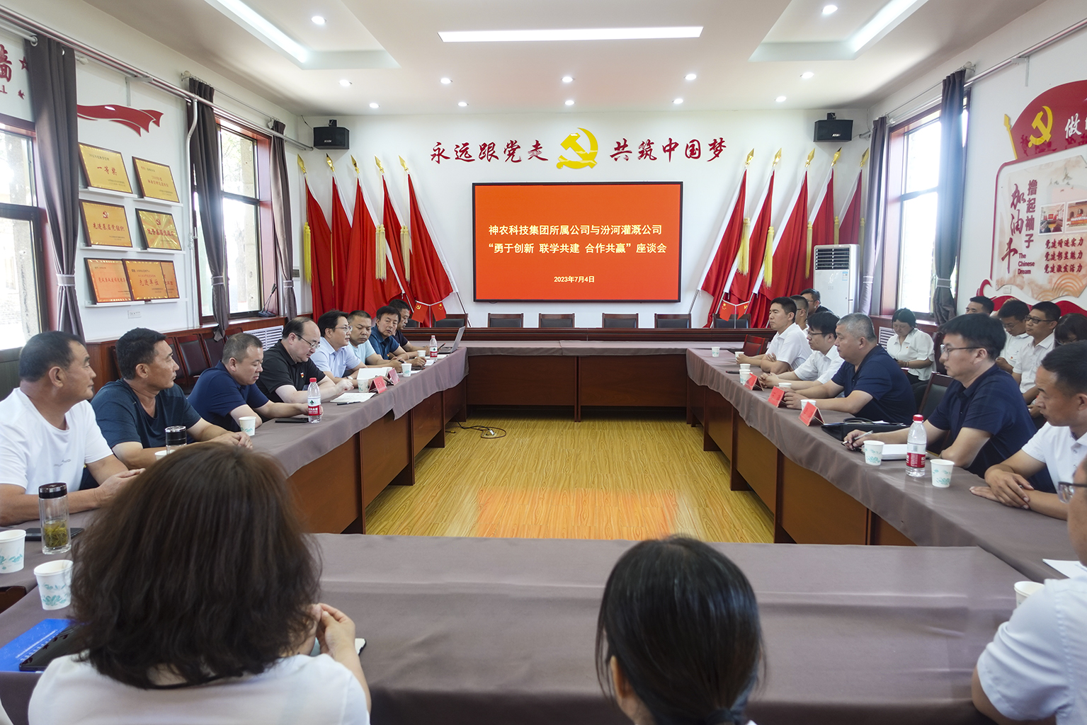 7月4日,山西汾河灌溉管理有限公司與神農(nóng)科技集團所屬神農(nóng)農(nóng)機集團、神農(nóng)漁業(yè)公司、神農(nóng)薯業(yè)公司聯(lián)合開展“勇于創(chuàng)新、聯(lián)學(xué)共建、合作共贏”主題黨日活動,赴汾東供水管理中心東二支管理所、科研服務(wù)中心、汾西供水管理中心等地,現(xiàn)場觀摩了汾河灌溉公司一體化閘門、測坑試驗區(qū)、農(nóng)業(yè)氣象觀測場、地下測坑和試驗田,調(diào)研公司“一支部一品牌”創(chuàng)建,參觀了東二支黨小組學(xué)習(xí)陣地。