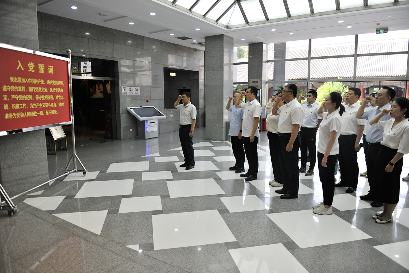 活動以“三個一”進(jìn)行。重溫一次入黨誓詞。全體黨員面對黨旗,由過“政治生日”的同志領(lǐng)誓重溫入黨誓詞,激發(fā)支部黨員堅定理想信念,自覺遵守黨章,終身踐行入黨誓詞,守初心、擔(dān)使命。送上一份生日祝?!,F(xiàn)場贈送“政治生日”賀卡,支部書記對黨員干部今后的學(xué)習(xí)、工作、生活提出要求和期望,激勵支部黨員牢記黨員身份、建功新時代。接受一次紅色教育。參觀彭真生平暨中共太原支部舊址紀(jì)念館,通過館內(nèi)實物與圖文并茂的壁掛講解,實地感受老一輩無產(chǎn)階級革命家的高尚情懷和艱苦奮斗的革命精神,激勵黨員干部傳承紅色基因,堅定為推進(jìn)紀(jì)檢工作高質(zhì)量發(fā)展不懈奮斗的決心和意志。