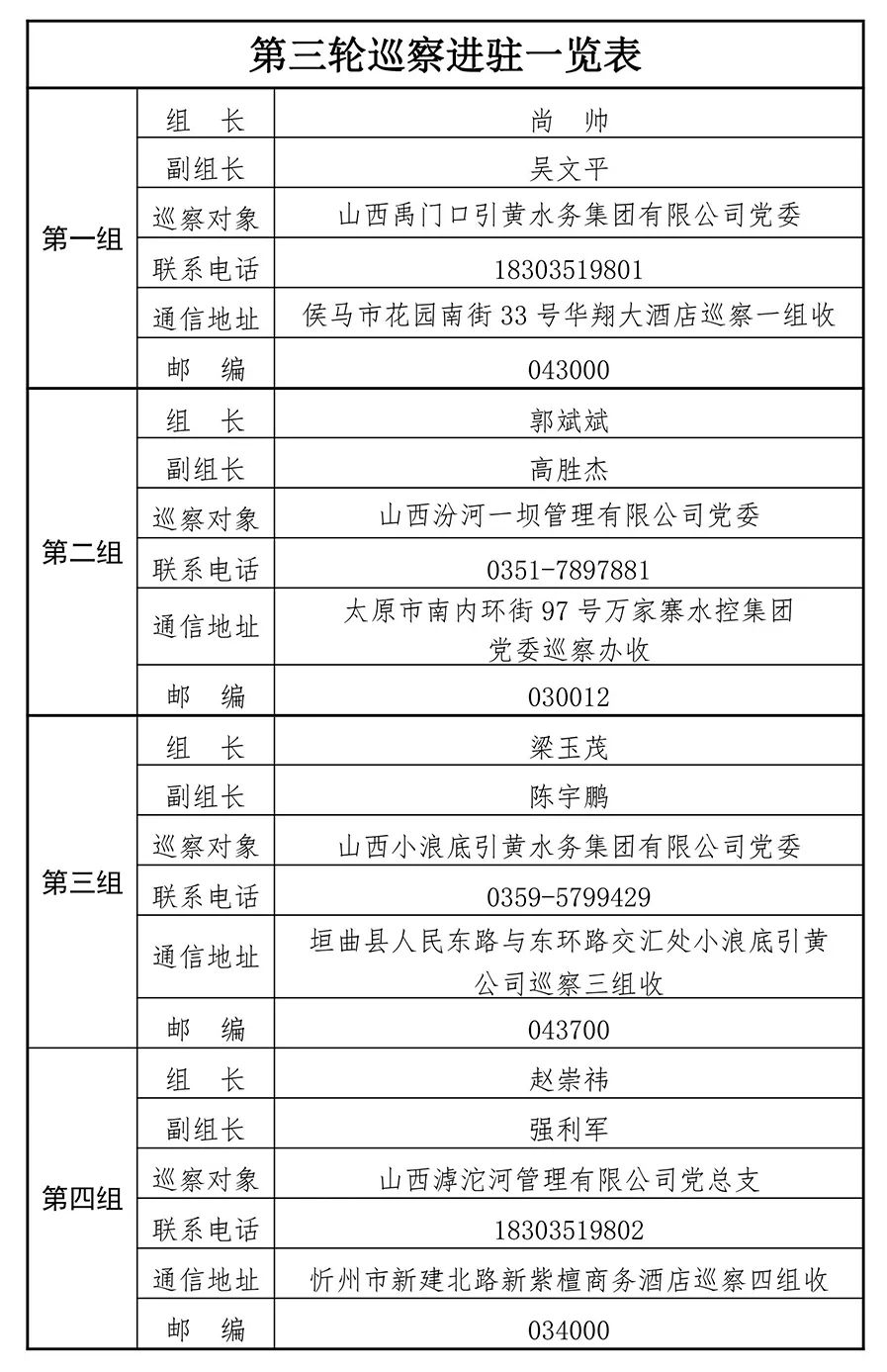 集團(tuán)黨委巡察組工作時(shí)間為7月10日至8月28日,巡察期間設(shè)立專(zhuān)門(mén)聯(lián)系電話、來(lái)訪接待、巡察意見(jiàn)箱、通信地址,受理涉及被巡察單位相關(guān)問(wèn)題的來(lái)信來(lái)電來(lái)訪。巡察組每天受理時(shí)間為8:00至17:30,巡察受理時(shí)間截至8月28日中午12:00。