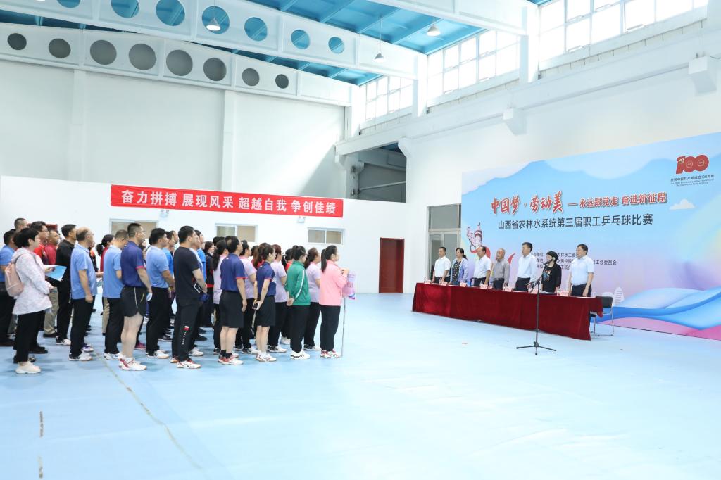 6月10日至11日,全省農(nóng)林水系統(tǒng)第三屆職工乒乓球賽在集團(tuán)職工活動(dòng)中心舉行。集團(tuán)公司黨委委員、副總經(jīng)理呼運(yùn)平出席開(kāi)幕式并致辭。來(lái)自全省農(nóng)林水系統(tǒng)的9支代表隊(duì)近60名選手參賽。