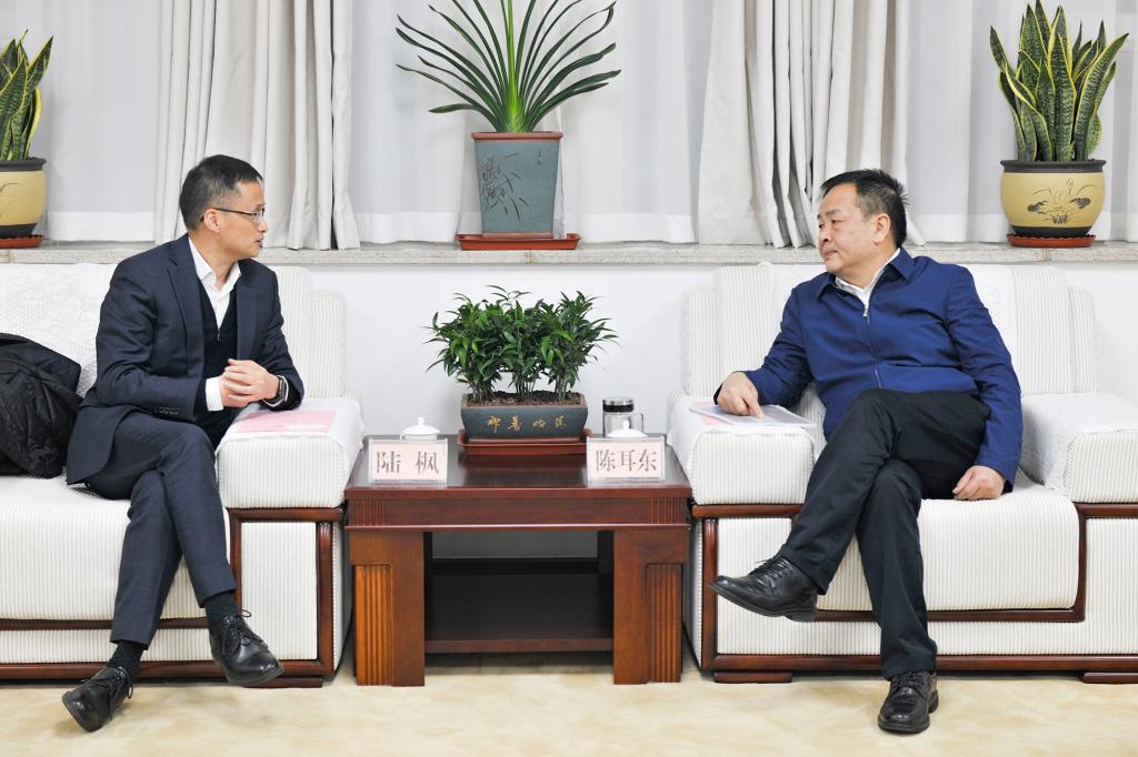 11月25日,萬家寨水務(wù)控股集團(tuán)黨委書記、董事長(zhǎng)陳耳東,黨委委員、副總經(jīng)理李俊剛會(huì)見中國(guó)國(guó)際金融股份有限公司債券大區(qū)董事、總經(jīng)理陸楓一行,萬家寨水務(wù)控股集團(tuán)相關(guān)部室、中心,中國(guó)國(guó)際金融股份有限公司相關(guān)人員參加。